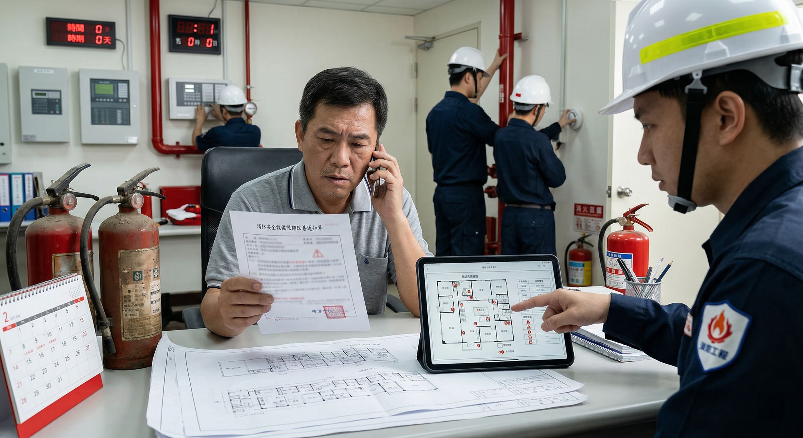法規雖然嚴格,但實務上也保有合理的彈性空間。若缺失項目涉及大型硬體設備更新,確實無法在短期內完工。此時,厚森消防會立即介入,協助業主擬定詳盡的「消防安全設備改善計畫書」,明確列出各階段施工排程、預計完工日期,以及施工過渡期間的替代性安全防護措施。只要在期限屆滿前向主管機關提出展延申請並獲核准,即可合法延長改善期限,有效免除立即面臨罰鍰的危機。